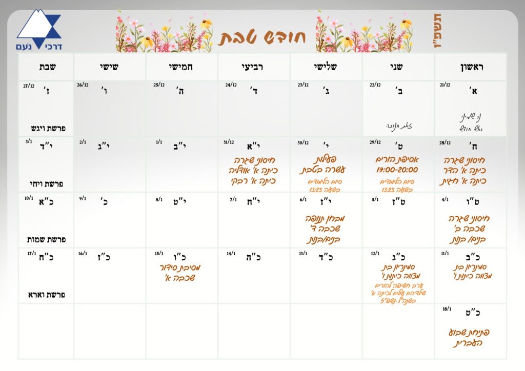 לוח חודש טבת